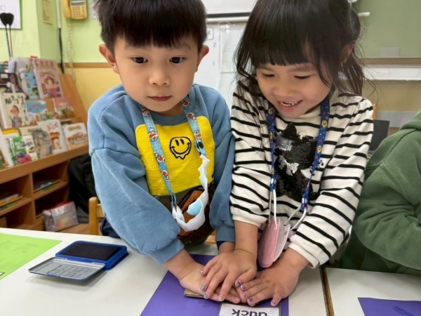 課程不以背單字、寫作業為主,而是透過動手做、看一看、說一說的方式,引導孩子在玩中理解英文的意思,培養語感與學習興趣,建立對英語的正向自信。