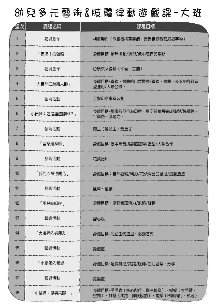 | 老師 | 純純老師【前任職雲門課程專業教師】& YOYO老師 / 芬芬老師【藝術老師】 |