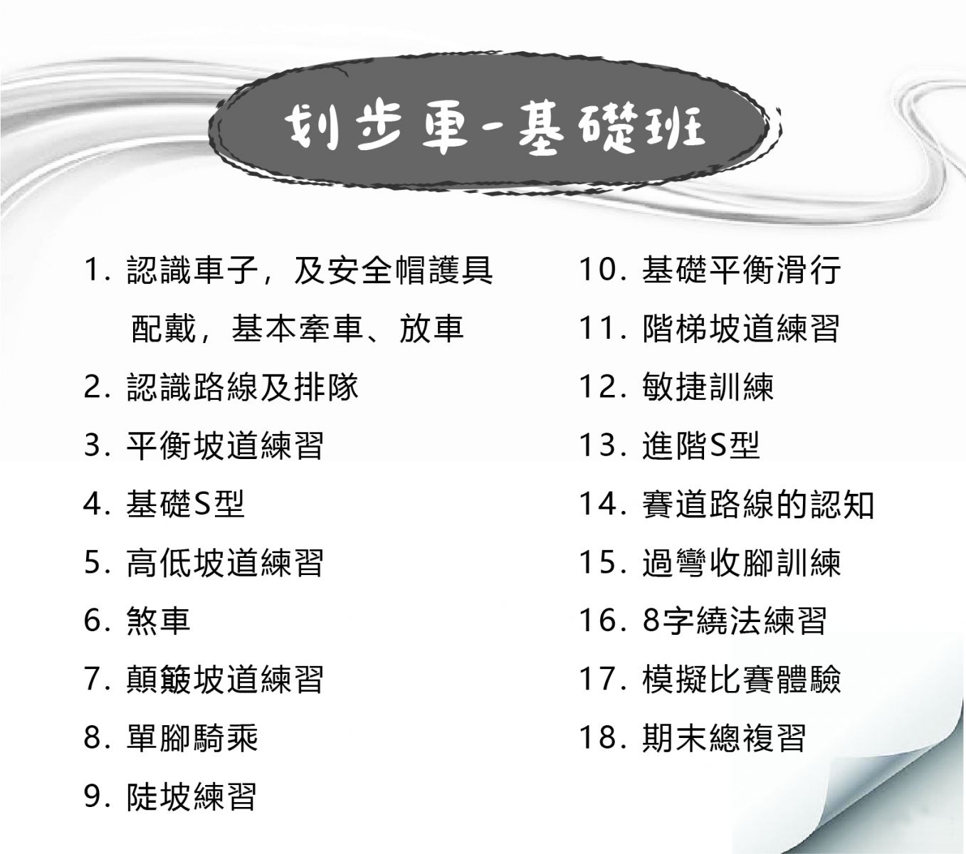 本課程專為幼兒設計,結合遊戲與運動,從零開始學習划步車的正確姿勢與操作技巧,讓孩子在安全的環境中快樂騎行!